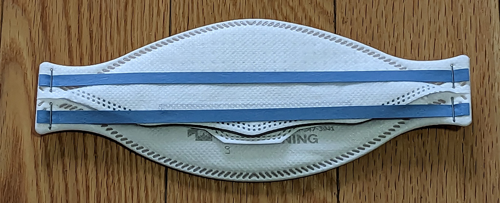 The second test and the only one I passed was the readily available 3M Aura 9205+ which is designed for non-medical environments and has blue elastic headband straps. 16/