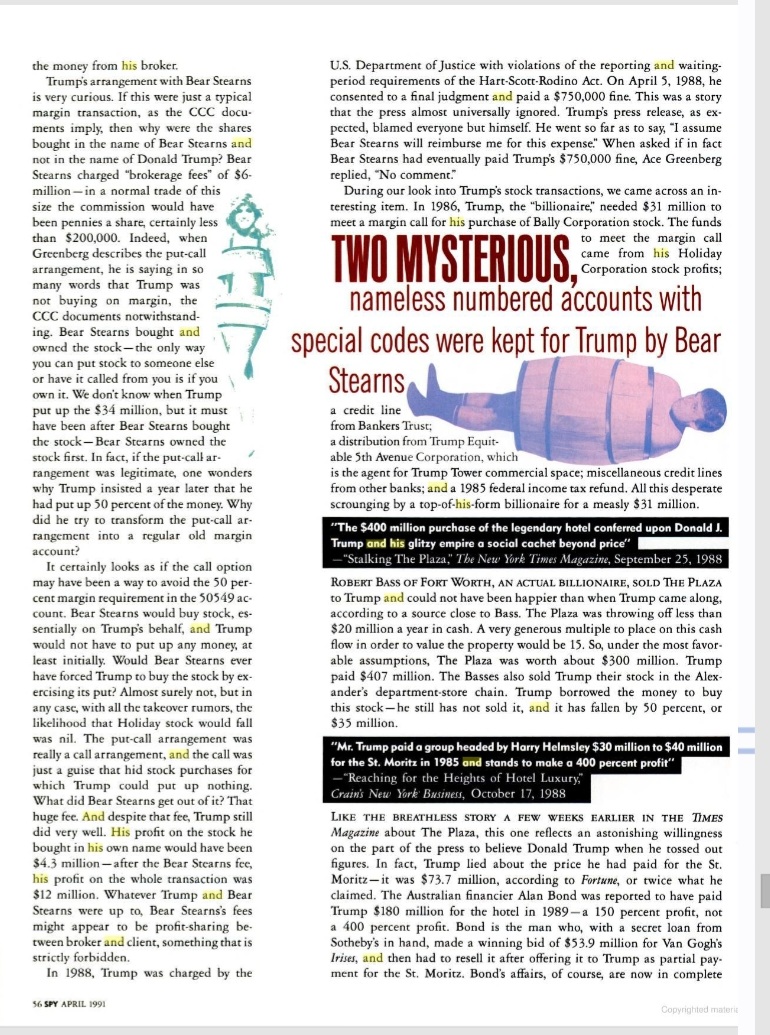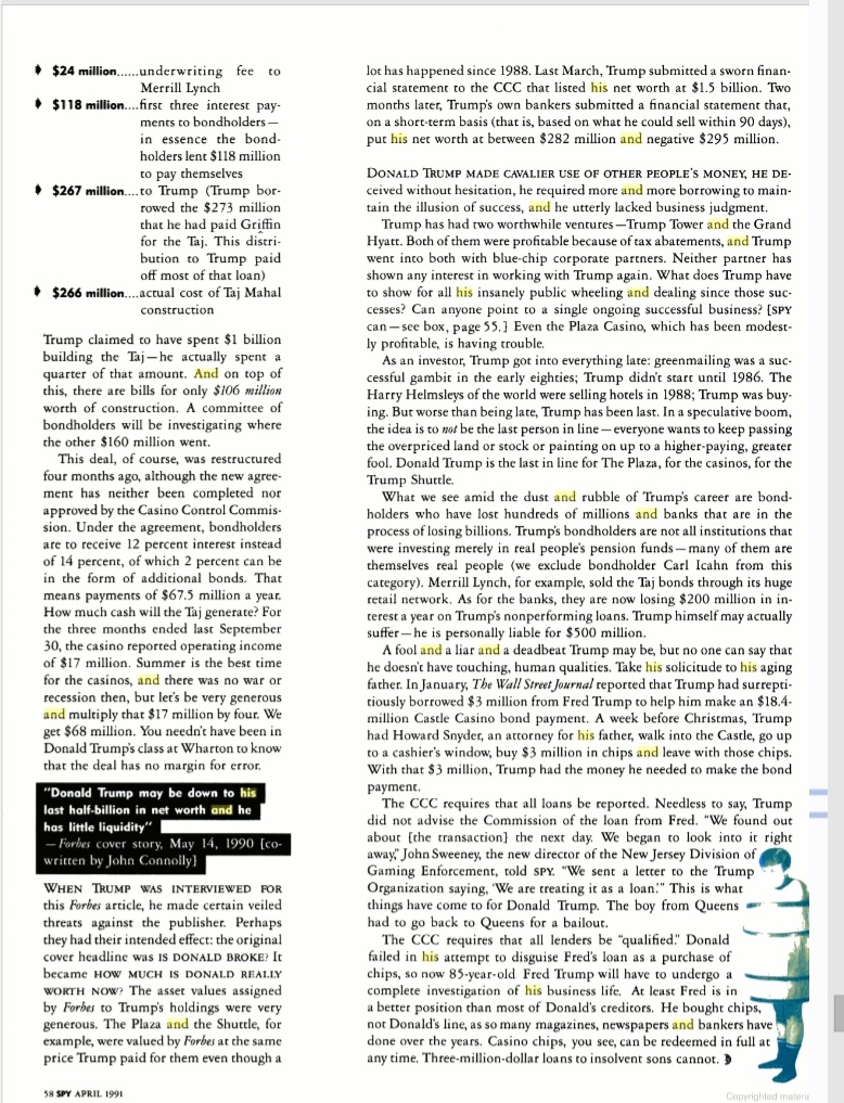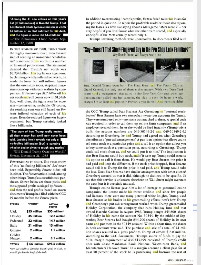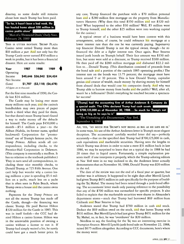 @jduffyrice All of the people, all the time. How Donald Trump fooled the media, used the media to fool the banks, used the banks to fool the bondholders & used the bondholders to pay for the yachts & mansions * mistresses. 1991 investigative article into Trump's fraudulent financial schemes.