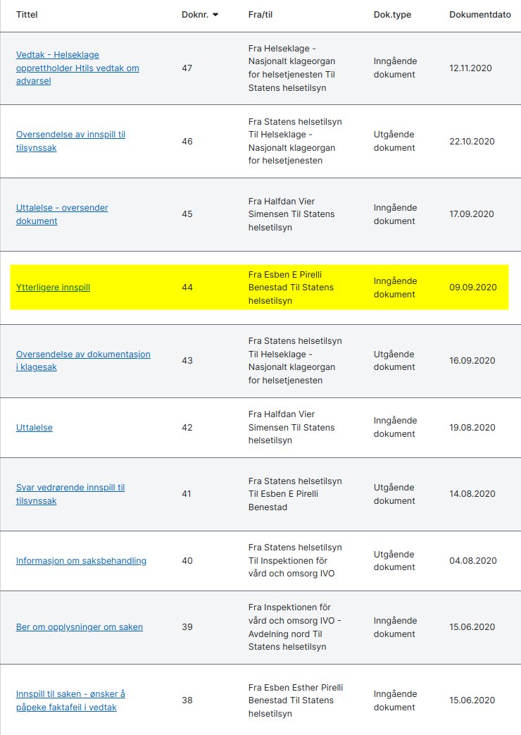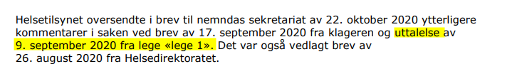 10/ Pasienten fikk fra 2016 hormonbehandling fra Esben E P Benestad. I vedtaket anonymisert som «lege 1». Se sammenstilling av opplysninger fra postjournal og vedtaket.