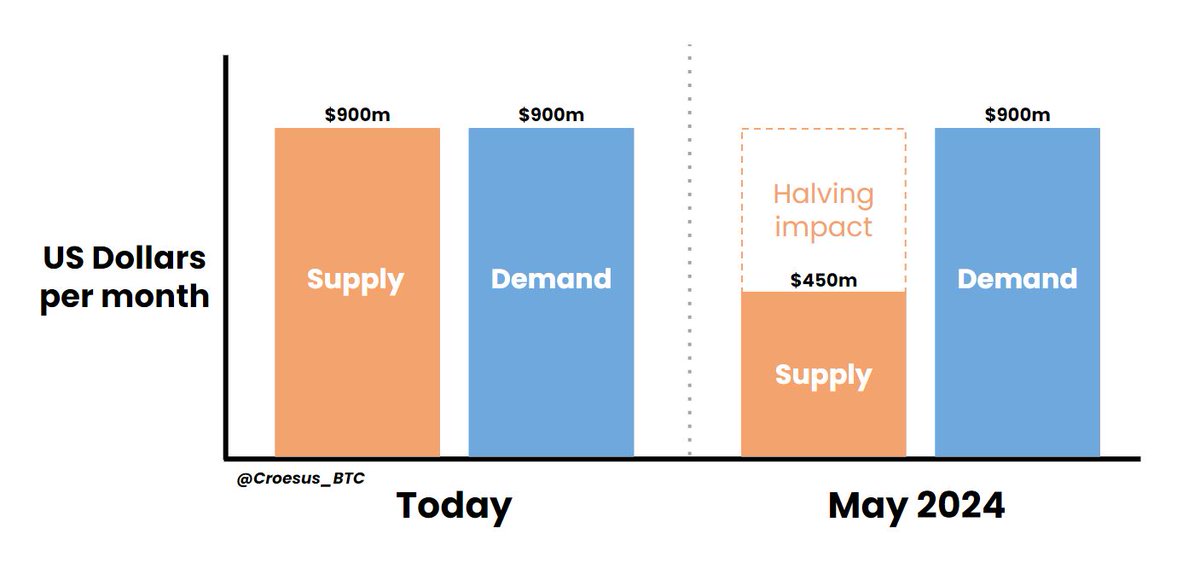 Bitcoin's annual supply inflation will drop from ~1.8% to ~0.9%, making it a "harder" asset than gold (1.5-2% annual supply growth).