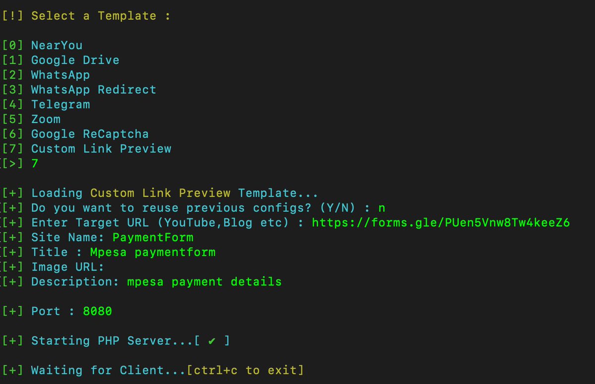 I decided to just play his own game against him and set up a google form, set up VPS and passed the form through a phishing tool (don’t ask me, there are too many of them there). Called him back and shared 2 links as backup as redundancy (1 bit.ly & 1 ngrok)