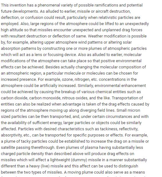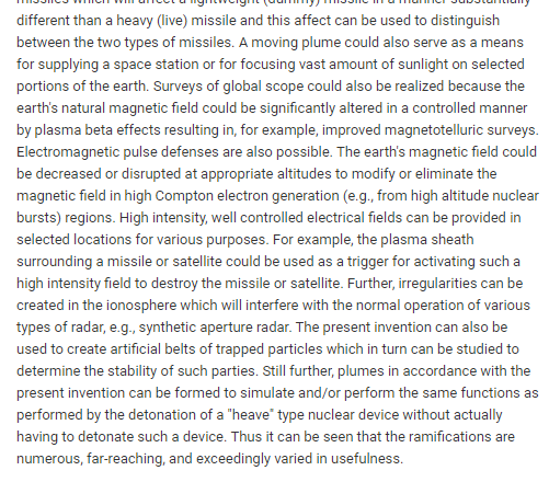 ▶️"Las defensas de pulso electromagnético también son posibles. El campo magnético de la tierra podría disminuirse o interrumpirse en altitudes apropiadas para modificar o eliminar el campo magnético..."