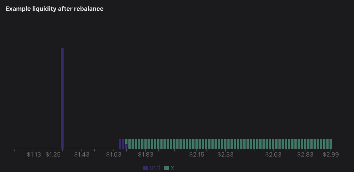 4/ Every 5 bins the liquidity is redistributed where a small chunk is within a reasonable bid from the current bin price and the rest moves to the "floor"