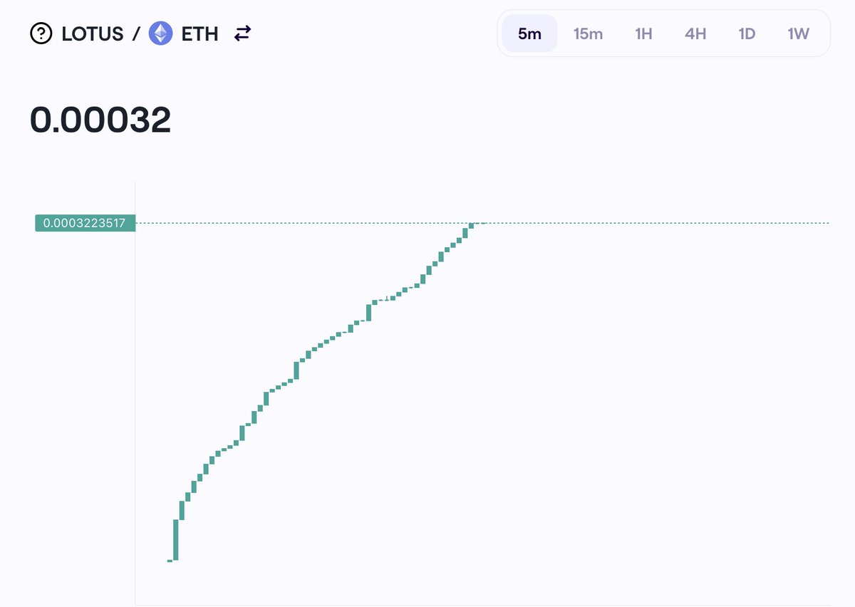 There is a set amnt of lotus at each price "bin" and once everything sells at that price it goes up another bin, 100,000 lotus per bin, increasing in price roughly 1% each bin