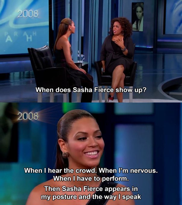 In 2008, to combat these struggles, she created Sasha Fierce, a stage persona that embodied the characteristics she would need to perform in front of millions.