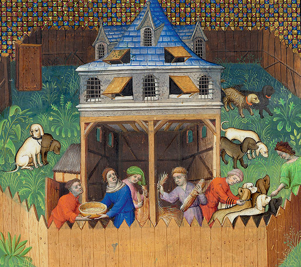 for example, edward duke of york specified that hounds should be given ample and clean space, have constant access to a yard, be taken to a bigger field to play once a day, be combed and checked for health concerns often, and have a stove in their kennel to keep them warm