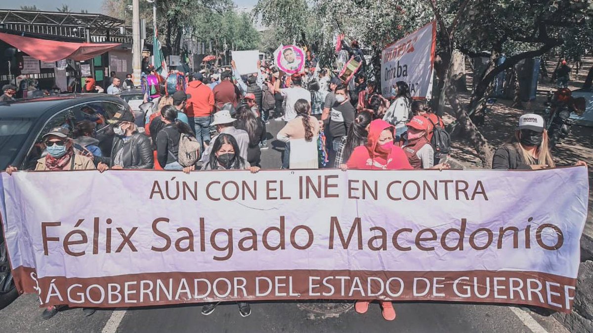 Y los policías tomaron un matiz político: ninguno de los cuerpos de seguridad hizo su aparición cuando simpatizantes de @FelixSalMac y militantes de @PartidoMorenaMx instalaron un plantón en las oficinas centrales del @INEMexico en protesta por el retiro de su candidatura.