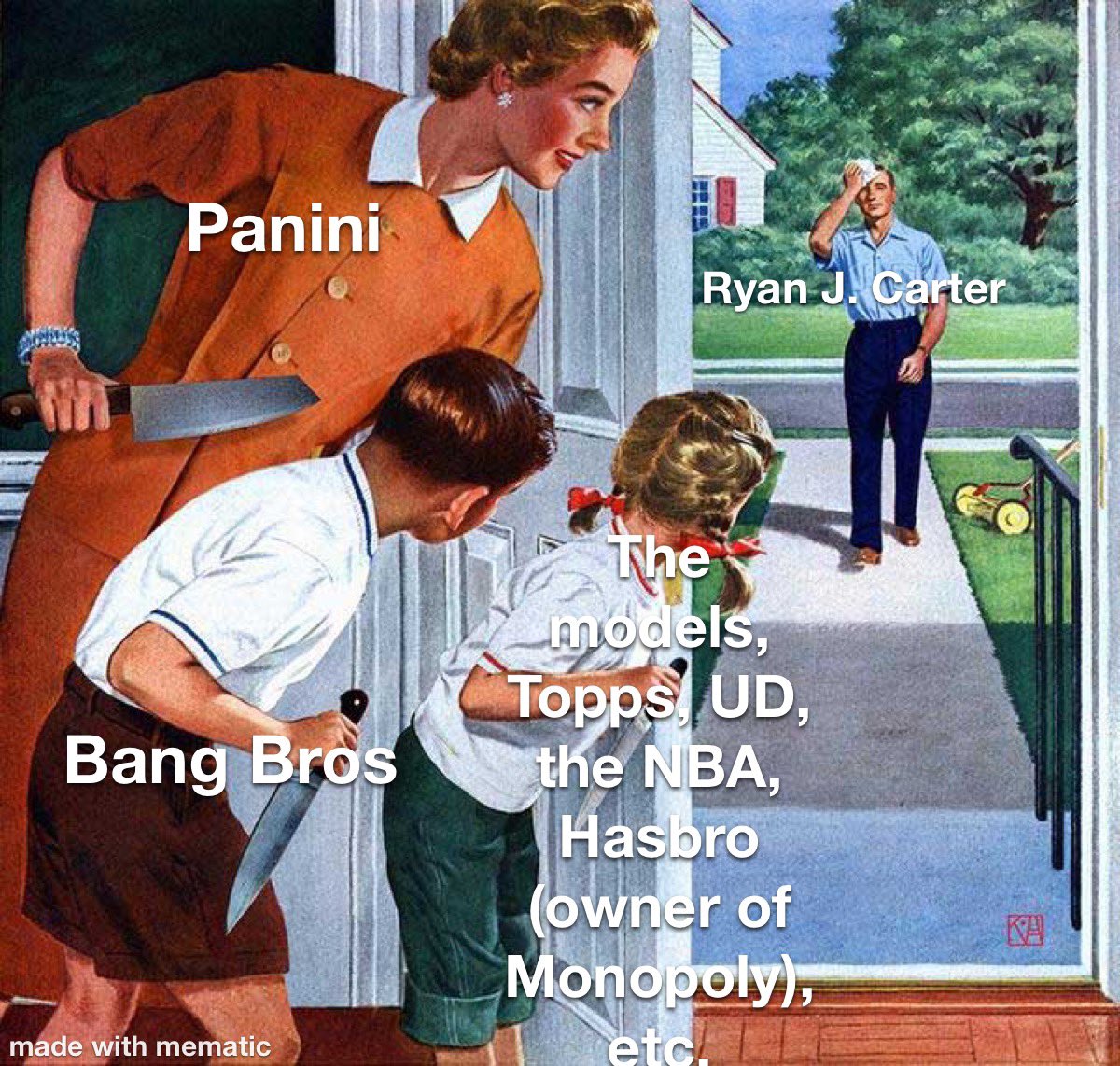 1) Who is Ryan Carter? 2) Will the actual Bang Bros get more involved than just a lawsuit to shut down the domain? 3) Are the autos on (some of) these cards real? 4) Did the defendant have agreements with the models on the cards?