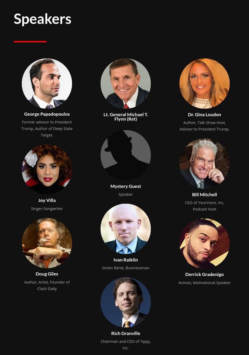 The website advertised $99 general admission tickets for the conference, while a “VIP All Day” pass cost $500. Those interested in a sit-down dinner with Flynn and front-row access to speeches could buy the “Ultra VIP” ticket package for $2,500.
