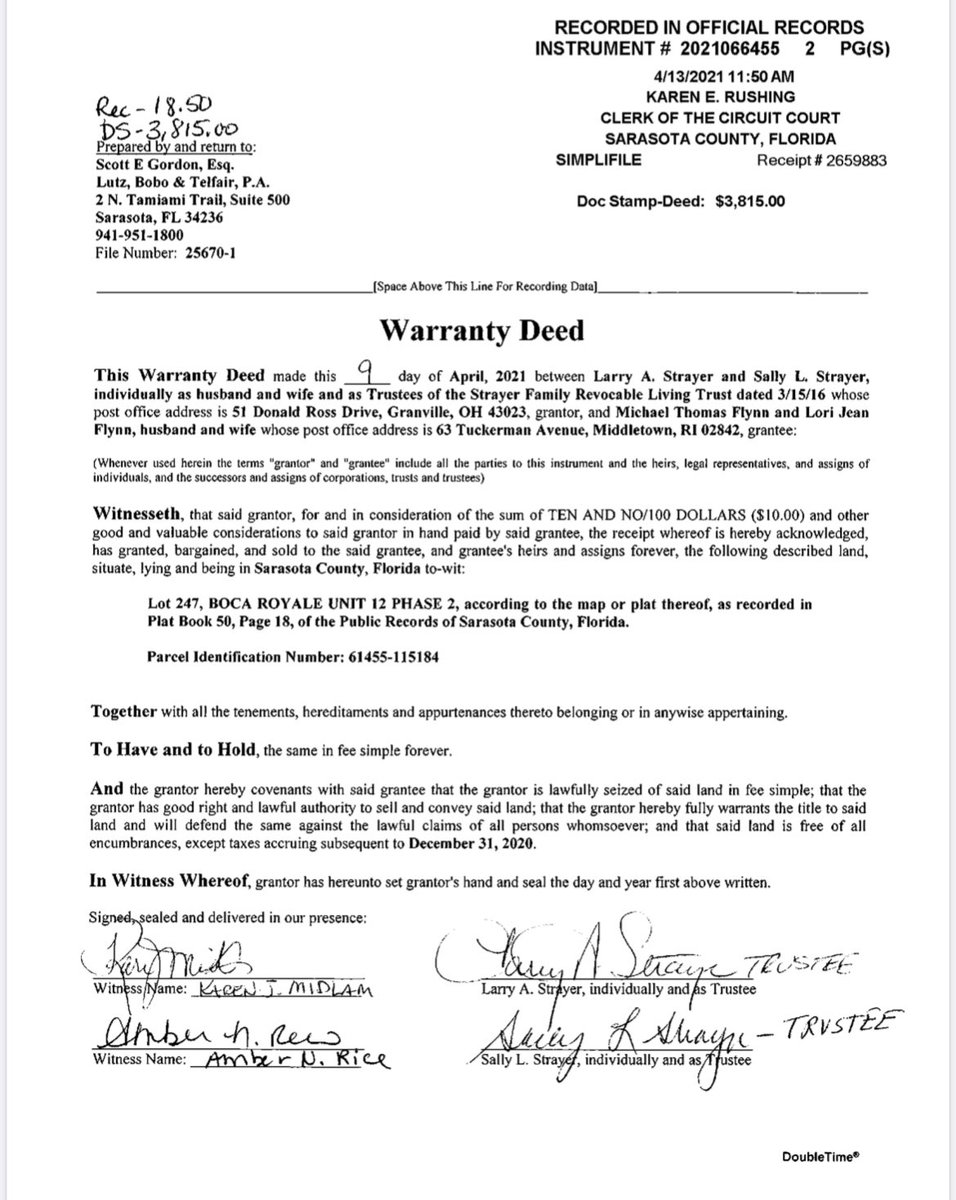 Flynn had bought it for about $774,000. Joseph told ABC News that Flynn sold it for slightly less than $895,000.