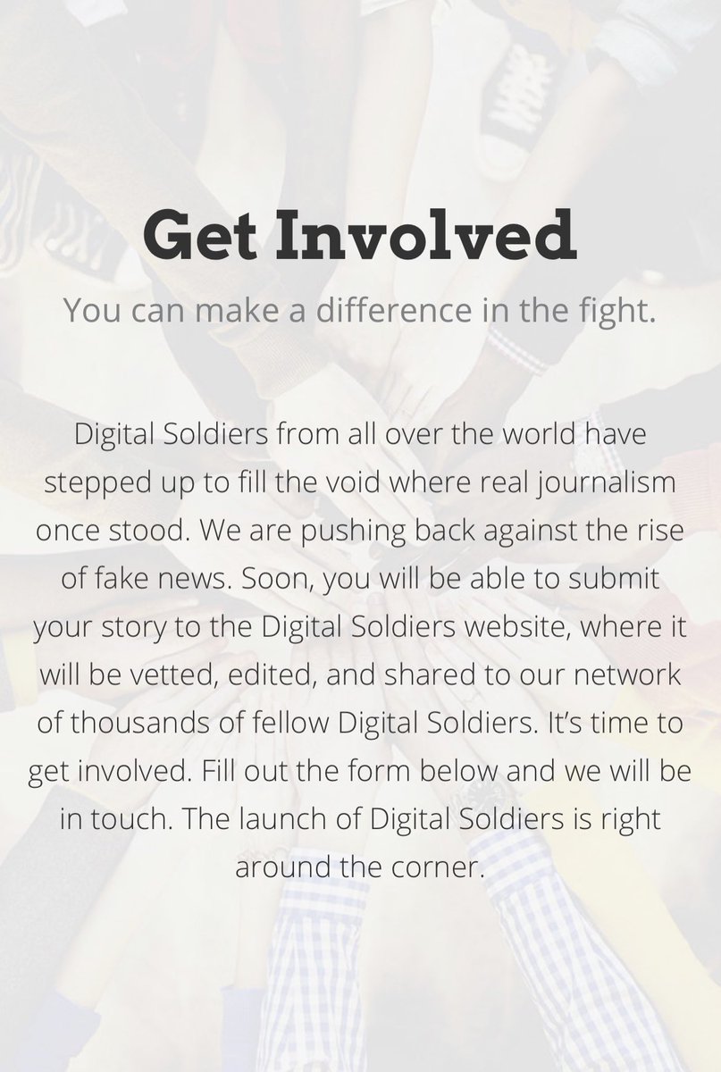 “Soon,” the site promised, “you will be able to submit your story to the Digital Soldiers website, where in partnership with UncoverDC .com it will be vetted, edited, and shared with our network of thousands of fellow Digital Soldiers.”