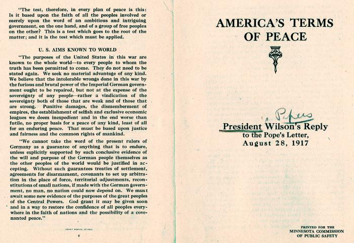 Il 1^ agosto 1917 il Papa Benedetto XV invia la sua famosa "Lettera ai Capi dei Popoli Belligeranti", esortandoli a intraprendere negoziati di pace e offrendo la mediazione della Santa Sede per raggiungere un accordo.