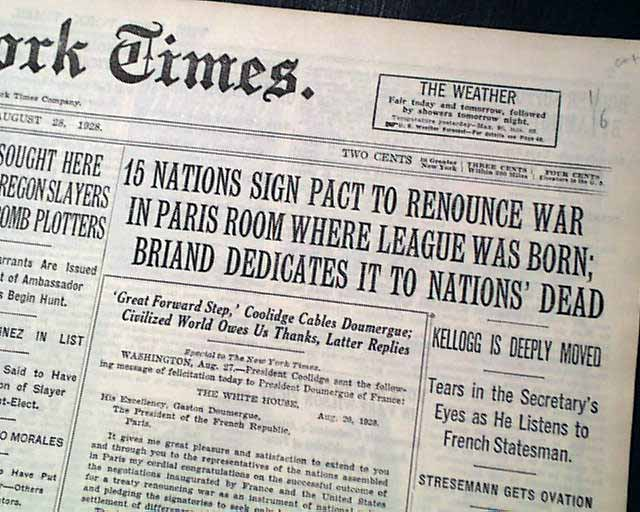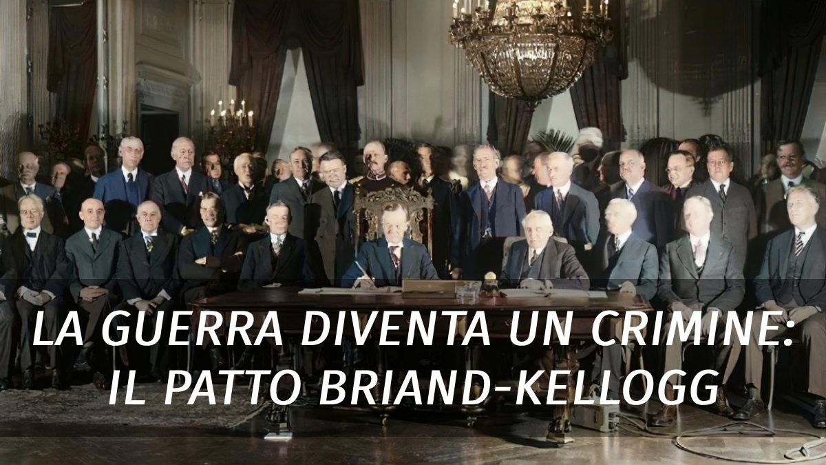 Accanto a lui ci sono Frank Kellog, il segretario di stato degli USA, e Gustav Stresemann, il ministro degli esteri tedesco.