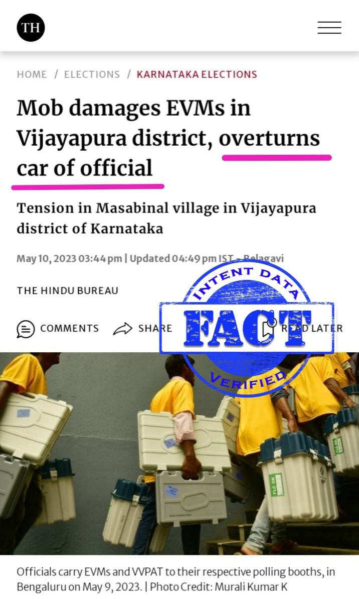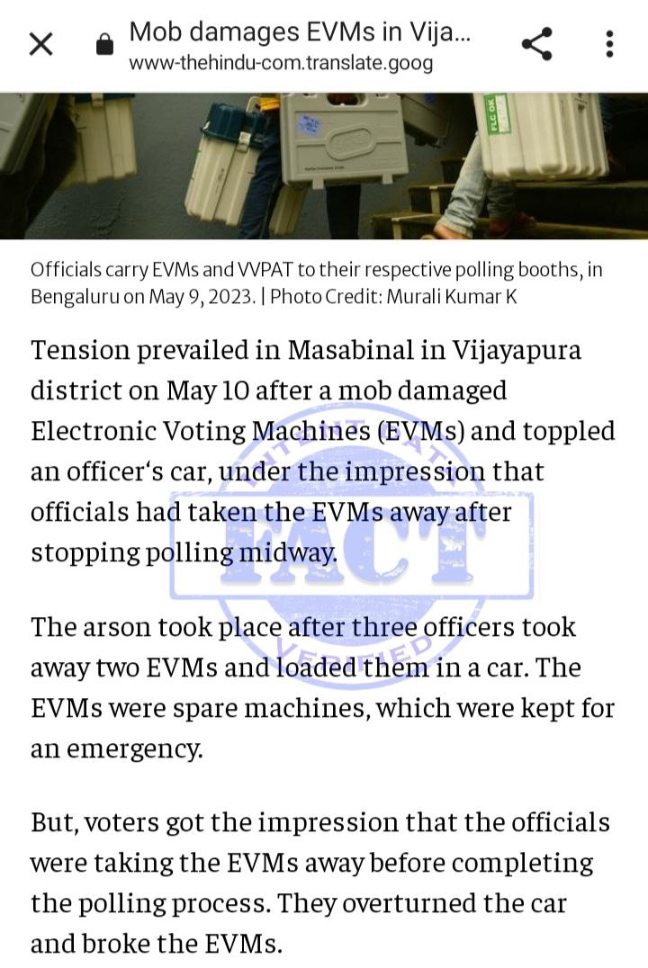 The fact is that a mob damaged EVMs and toppled an officer's car, under the impression that officials had taken the EVMs away after stopping polling midway. The arson took place after three officers took away two EVMs and loaded them in a car. (2/4)