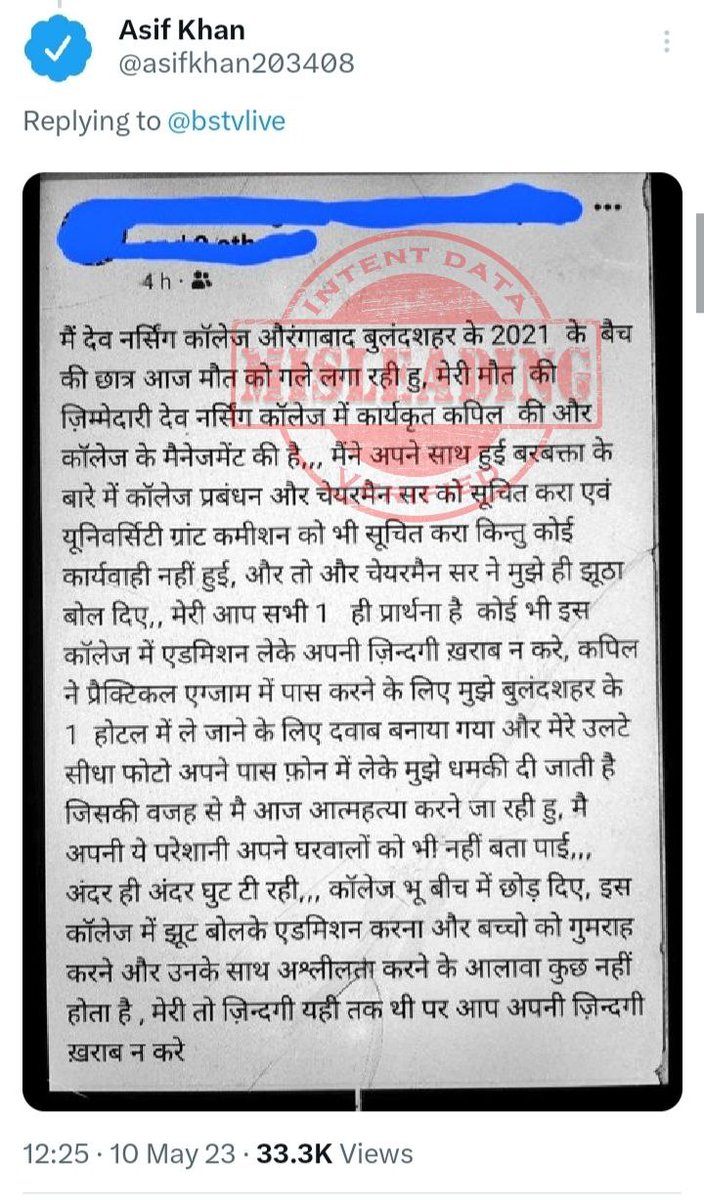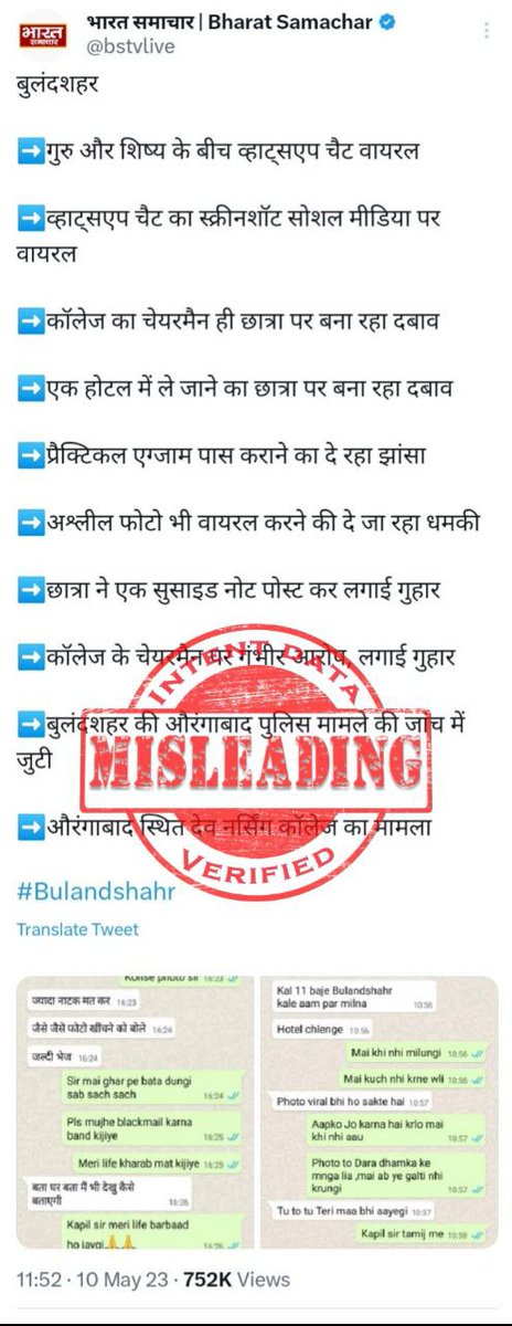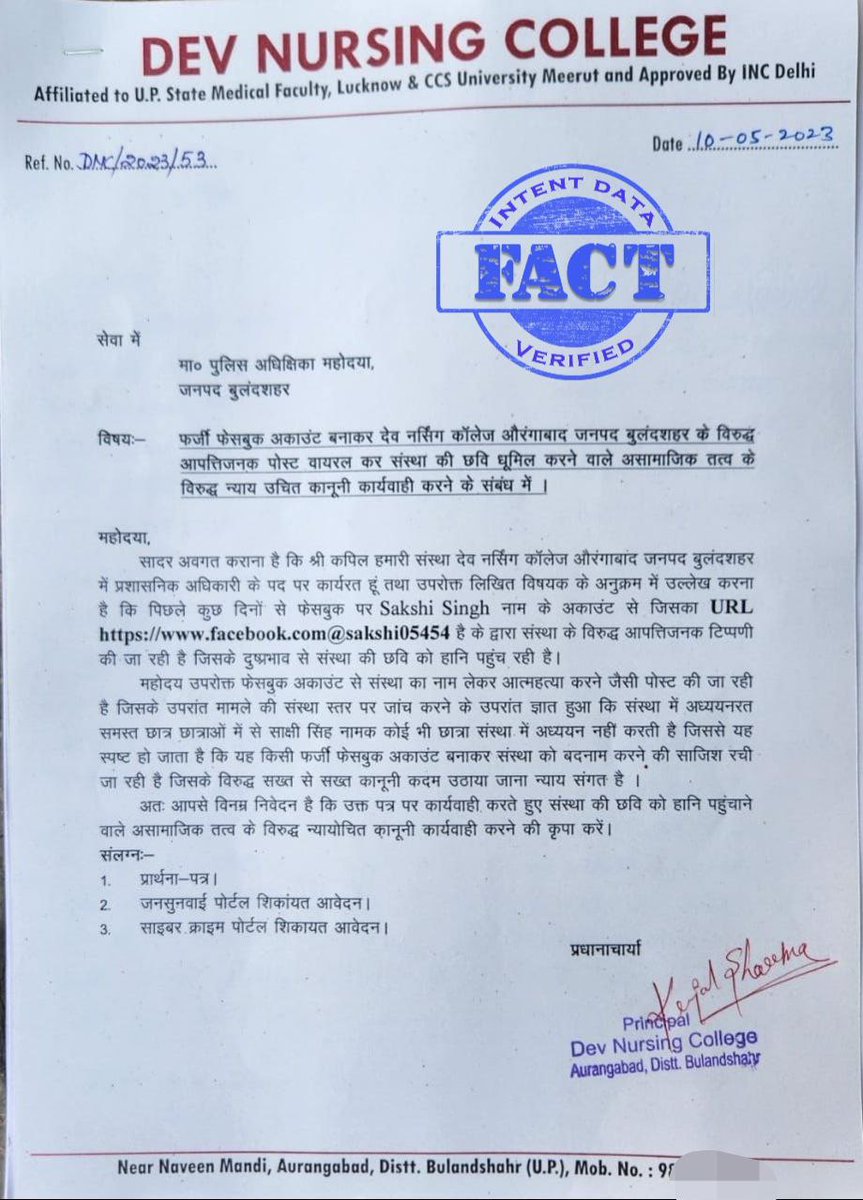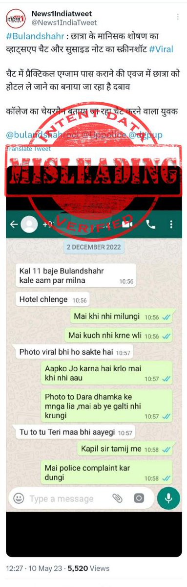 According to Bulandshahr police, the technical investigation found that viral screenshots are edited and have nothing to do with reality. The police received a written statement from the college management, that no such student took admission there. (2/4)