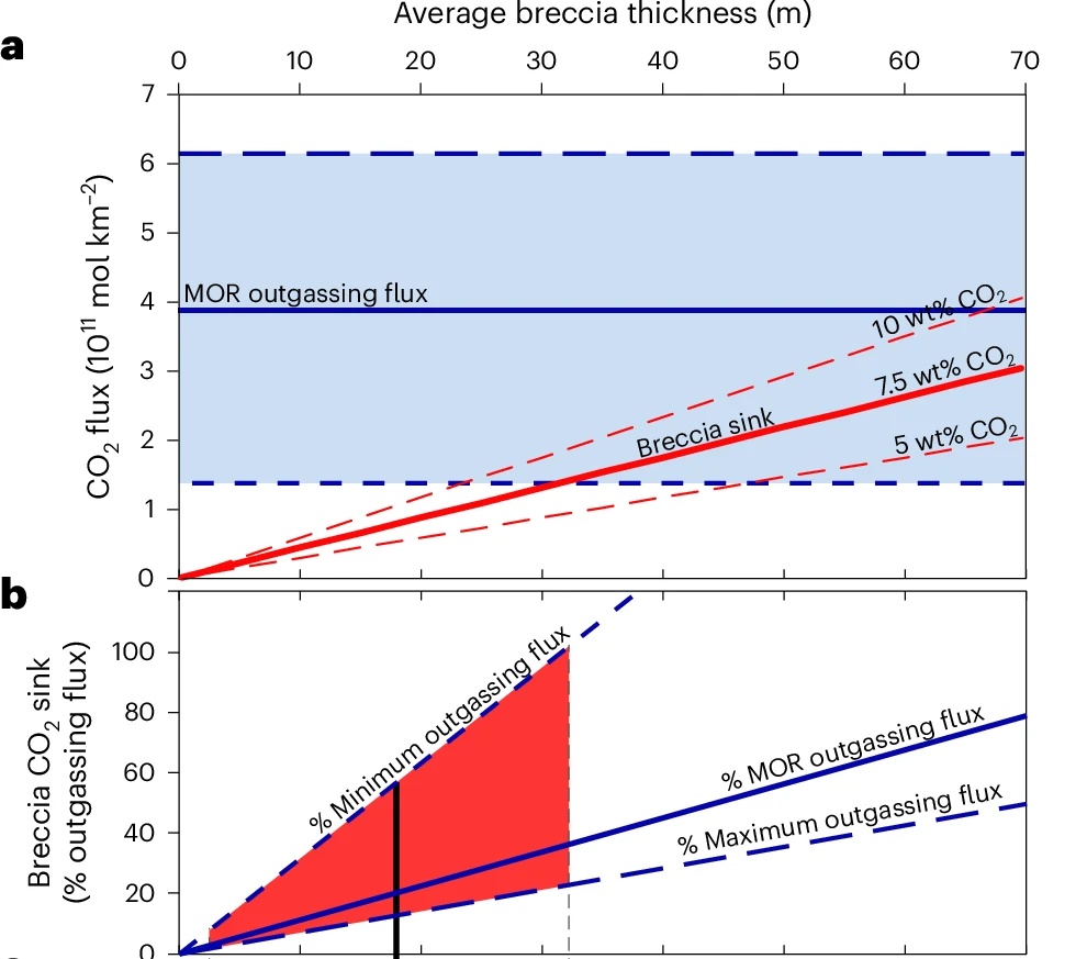 They found talus breccias containing ~7.5 wt% COโ - the highest carbon content ever measured in upper ocean crust, up to *40 times richer than previously sampled basalts.