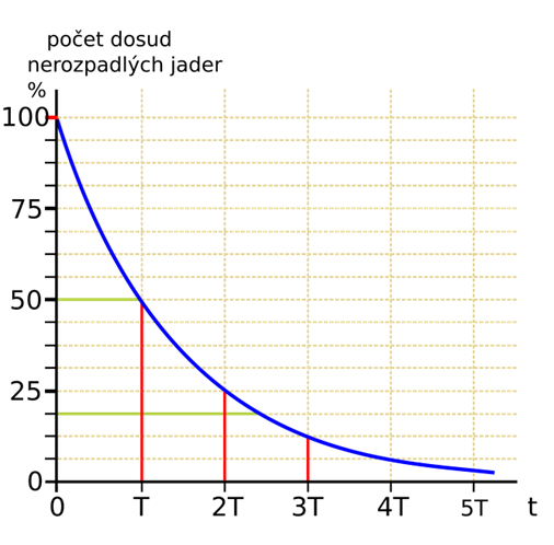 Přírodní hodiny v podobě této přeměny tikají tak, že za 4,5 miliardy let se přemění polovina U238 na Pb 206. Za dalších 4,5 miliardy let je z této poloviny čtvrtina a tak dále. Jde o známý poločas rozpadu, někdy psaný také jako poločas přeměny.