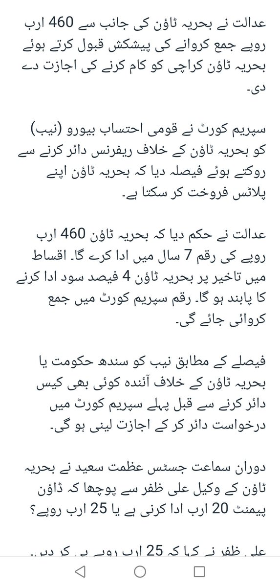 جرمانے کی ڈاؤن پیمنٹ 25 ارب روپے سپریم کورٹ میں جمع ہوگئی اور اس کے بعد 2.24 ارب ماہانہ 4 سال اور باقی 3 سال میں۔