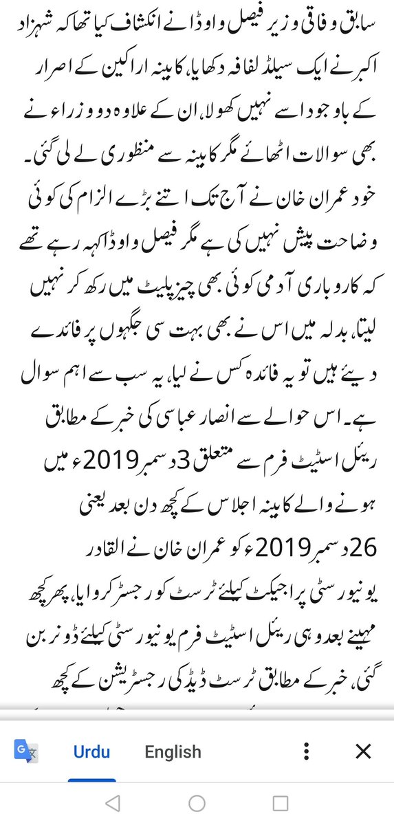 3 دسمبر 2019 میں کابینہ نے پیسہ ریاض کے جرمانے میں ایڈجسٹ کرنے کی منظوری دی۔ 26 دسمبر کو عمران نیازی مشہورِ زمانہ القادر ٹرسٹ رجسٹر کرواتا ہے اور اور پھر اس اس ٹرسٹ میں بھی وہی کھیل کھیلا جاتا ہے جو بنی گالا میں کھیلا گیا یعنی