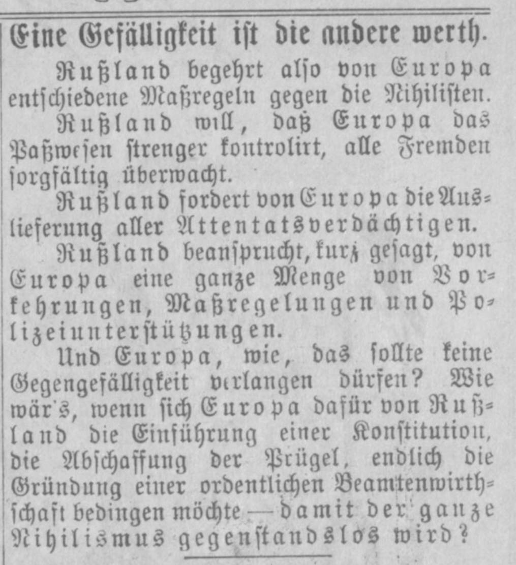 Die „Ochrona“, der von Alexander III. gegründete Geheimdienst, ging gegen „Staatsfeinde“ im Zarenreich vor. #Russland verlangte auch die Auslieferung aus anderen Staaten. Die Wiener Satirezeitung „Kikeriki“ macht sich über diese „Internationalisierung“ der Repression lustig/4