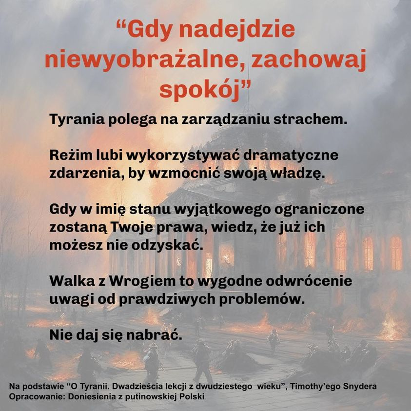 👉 Tyrani zarządzają strachem i wykorzystują dramatyczne zdarzenia, by odebrać nam kolejne prawa i umocnić władzę. /1