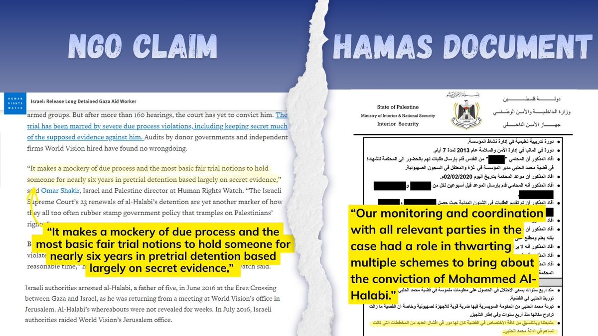 While @HRW ran with claims that the trial’s secrecy “makes a mockery of due process,” Hamas’ own documents show that it was actively interfering with trial, noting, “Our monitoring and coordination with all relevant parties in the case had a role in thwarting multiple schemes to bring about the conviction of Mohammed Al-Halabi.” >>