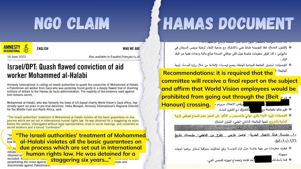 .@Amnesty said El-Halabi was detained “for a staggering six years” and that the case “violates all the basic guarantees on due process.” But Hamas’ own internal records show a key reason proceedings dragged on: Hamas moved to block witness testimony, deciding World Vision employees “would be prohibited from going out through the [Beit Hanoun] crossing” in order to hamper the trial. >>