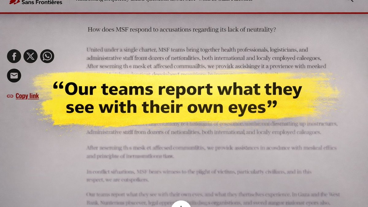 MSF operates in 70+ countries with a $2.4B budget. It claims neutrality based on medical ethics and states its teams “report what they see with their own eyes.” In the past decade, its reporting on 🇮🇱 and Gaza increasingly consisted of blatantly false testimony, and erased key dimensions that contradicted the biased narrative. >>