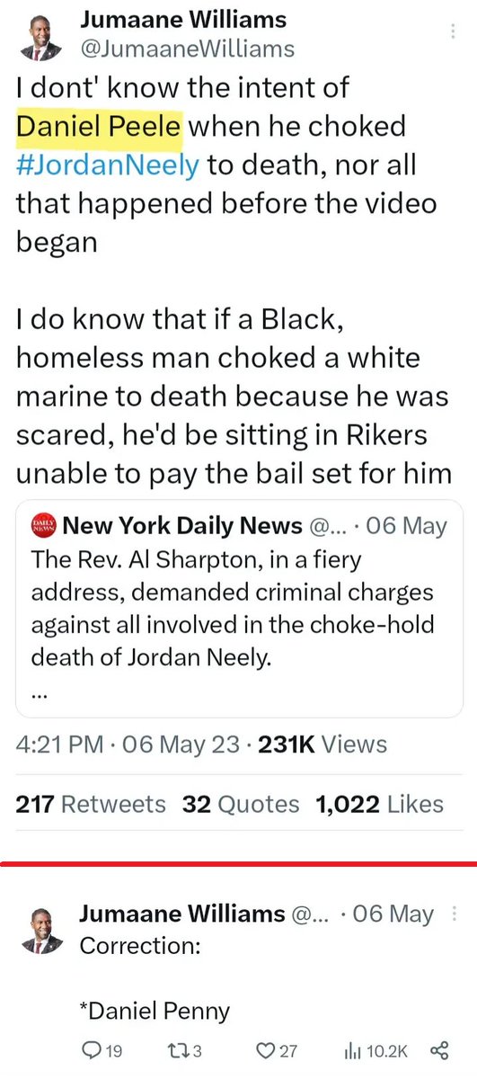 On the left, we have activist & politician Jumaane Williams strangely misidentifying Penny as Peele in a tweet, later correcting himself.