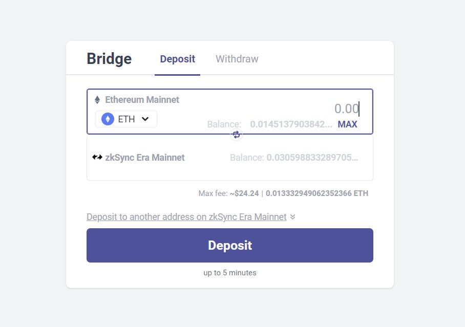 - To do this, transfer $ETH to the zkSync network via the official bridge portal.zksync.io/bridge