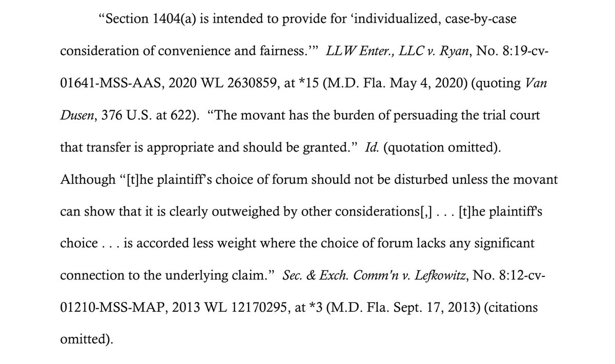 As the filing states, first the court has to find that the Plaintiff could have originally brought this action in DC, and then, whether transferring the case there would serve the… twitter.com/i/web/status/1…
