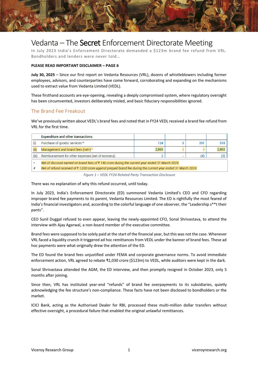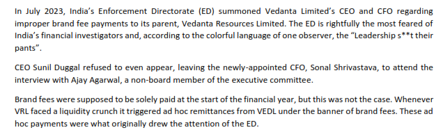 It reportedly started in July 2023, when the ED summoned $VEDL's CEO & CFO over "improper brand fee payments". The ED found the fees unjustified under FEMA & corporate governance norms. Talk about a "Brand Fee Freakout." $HZL 3/
