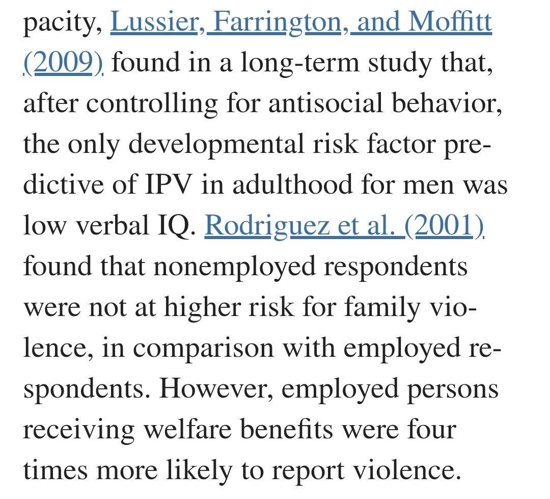 Esta asociación se ve eclipsada por otros factores también mencionados en esta parte del artículo. Incluso el bajo coeficiente intelectual verbal es señalado como un factor de riesgo.