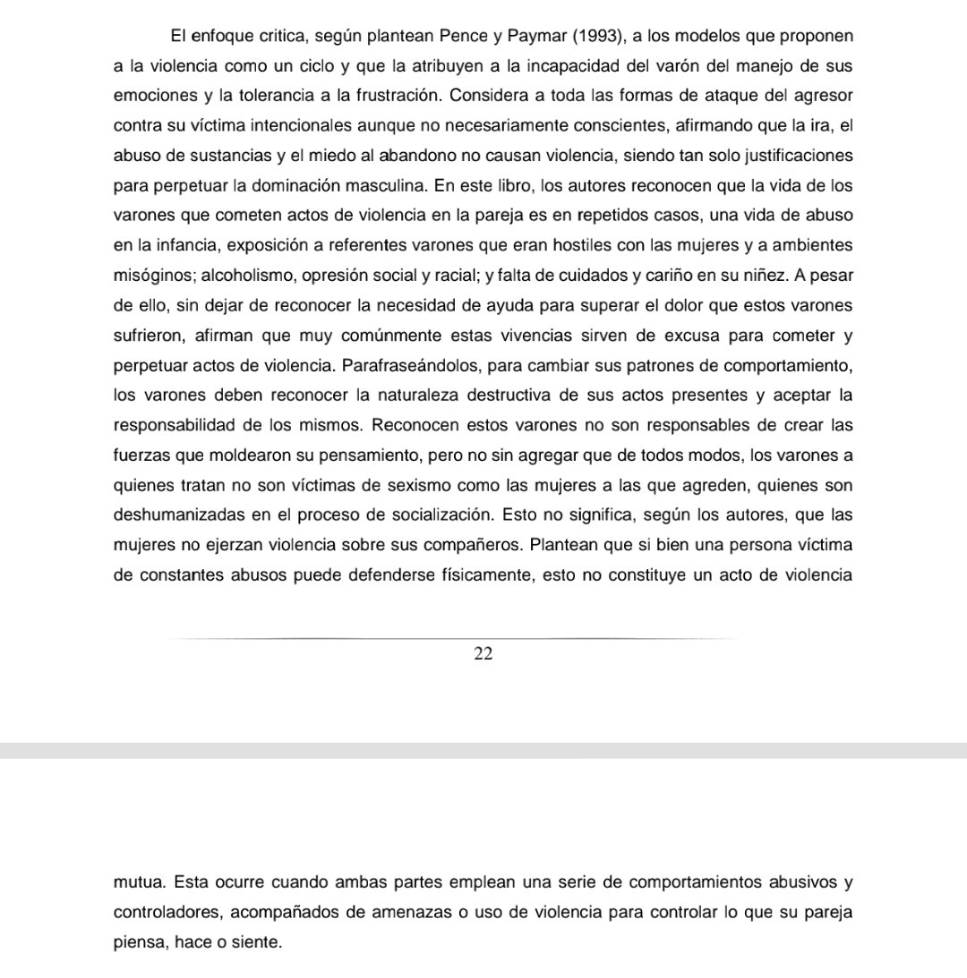 Lo bueno de este paper es que muestra otros modelos alternativos a este, como el llamado "modelo de la violencia", que presenta a la violencia en la pareja como un fenómeno que, independientemente del sexo, tiene etiologías similares y causas ajenas a las sociológicas.