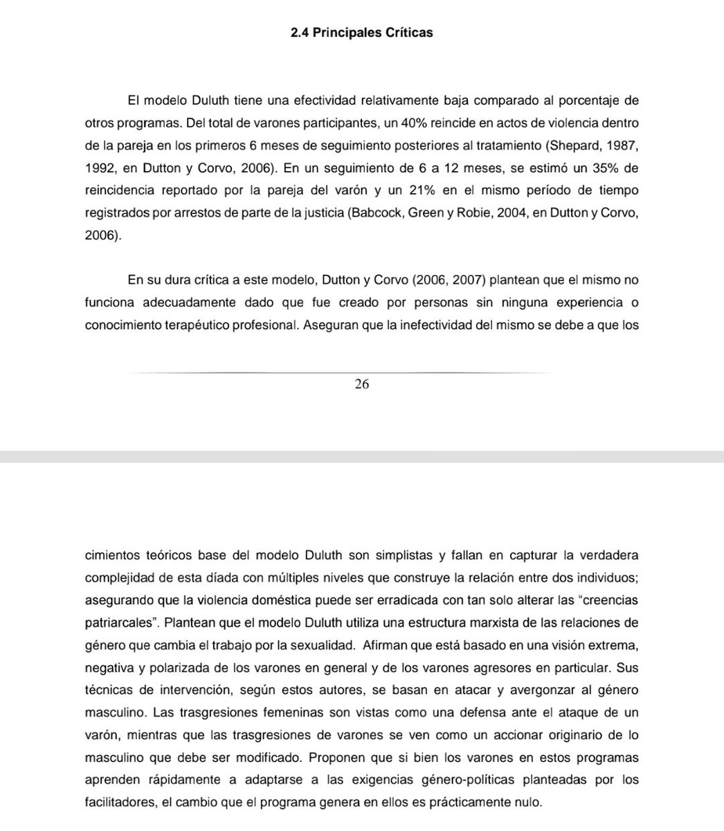 Es decir, que existe evidencia contraria a la efectividad del modelo Duluth como forma de rehabilitación de maltratadores.