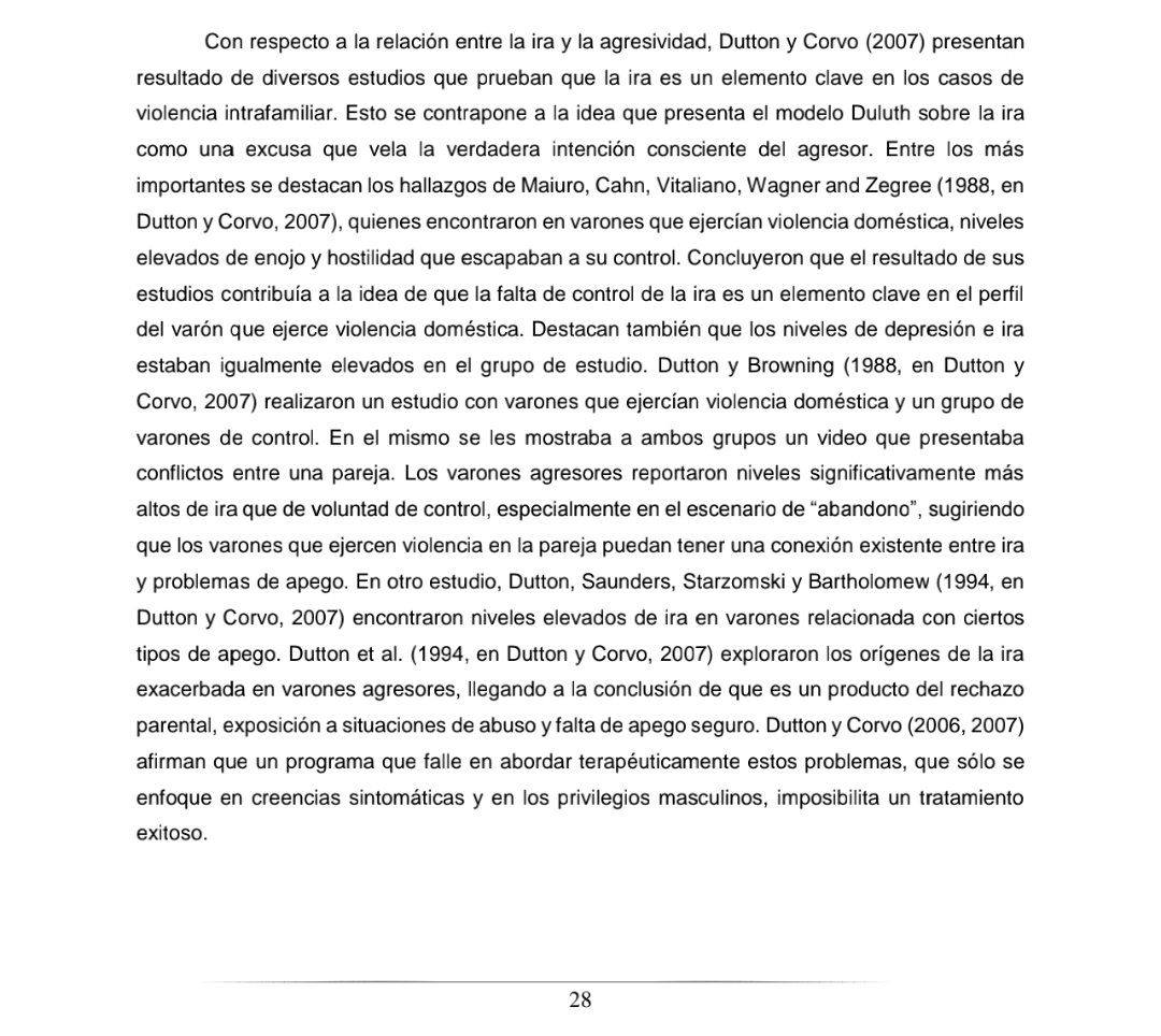En este trabajo de fin de grado se realiza una interesante exposición sobre lo que es el modelo Duluth y lo que sus autores piensan sobre él. Aquí vemos uno de los componentes más característicos del modelo Duluth: la importancia restada a la falta de control de la ira +