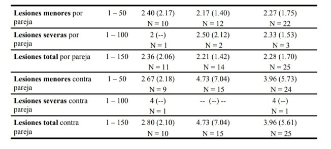 Las frecuencias, hay más agresión femenina que masculina, así como el grado de violencia recíproca entre ambos miembros de la pareja es varias veces superior al de violencia unidireccional. A título personal, esta alta prevalencia de la reciprocidad me parece preocupante.