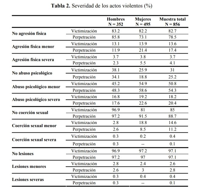 En este otro estudio que analiza la violencia en parejas con edades comprendidas entre los 18 y los 28 años, con un tamaño muestral de n = 11.370, encontramos que en la práctica totalidad de +