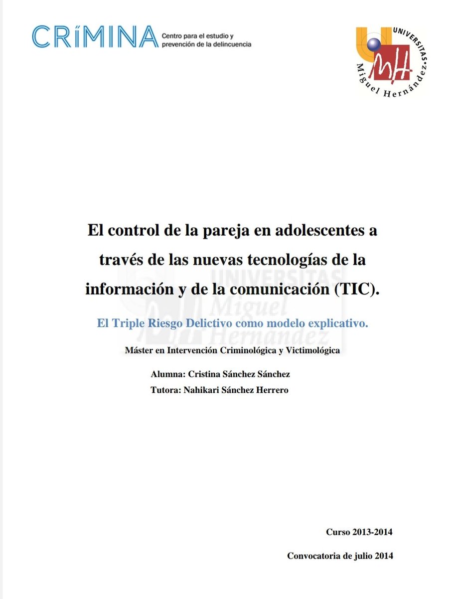 Este otro estudio, realizado como un trabajo de final de máster en Intervención Criminológica y Victimológica, y que versa sobre las actitudes de control en las parejas adolescentes a través de las TIC (Tecnologías de la Información y la Comunicación), hallamos también +