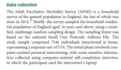 Reportada de aproximadamente el 8% en ambos sexos, y que estos casos están íntimamente relacionados con el uso de servicios asistenciales de salud mental (lo que implicaría la existencia de trastornos mentales). El tamaño muestral del estudio es de 7.546 participantes con un +