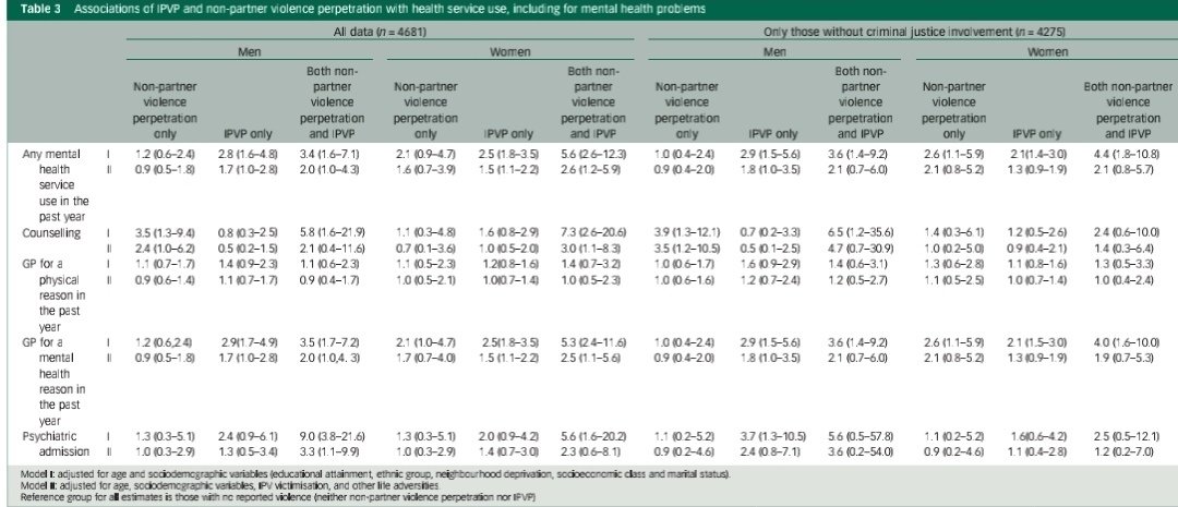 En la tabla 3 del estudio, vemos la asociación entre la perpetración de esta violencia y el uso de servicios de salud mental (lo que implicaría la existencia de trastornos o enfermedades mentales).