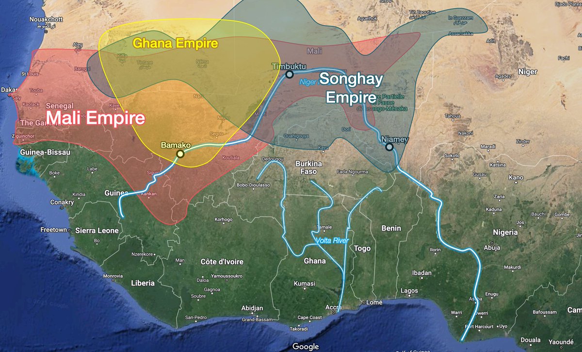 And empires, which arose in the only place that could host them—the shores of the Niger River, around what's today ~Mali and Niger