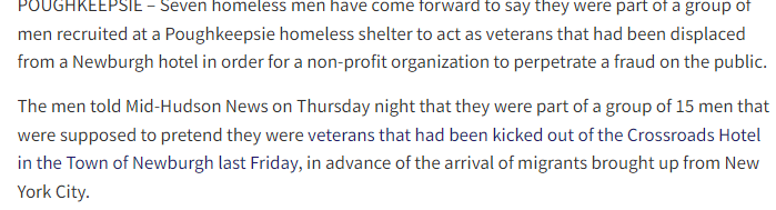 "Fox News confirms 20 homeless vets just got kicked out of several hotels in the suburbs north of Manhattan to make room for those migrants"