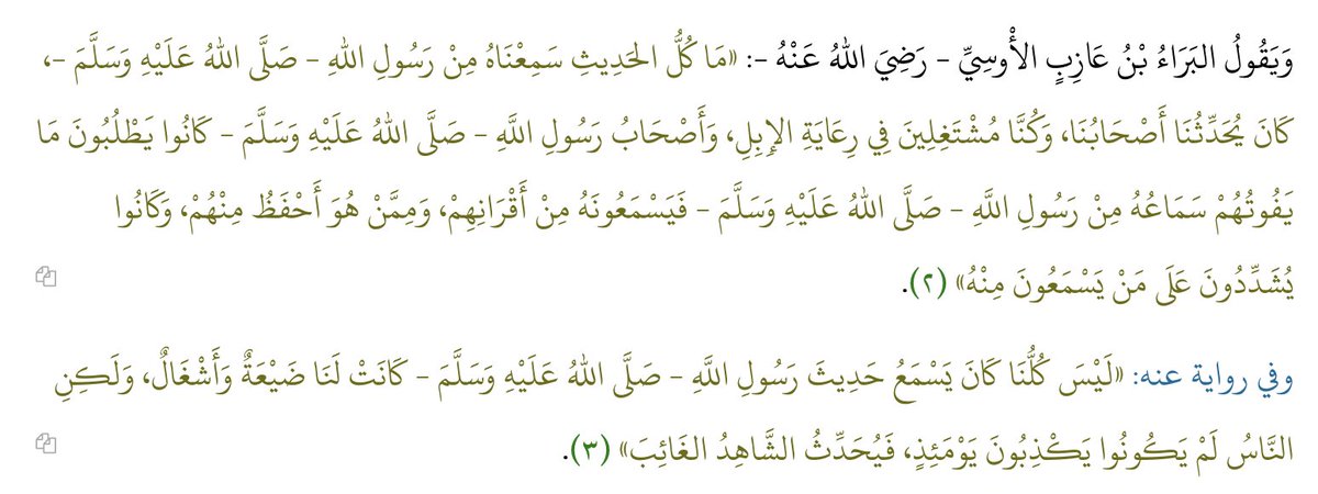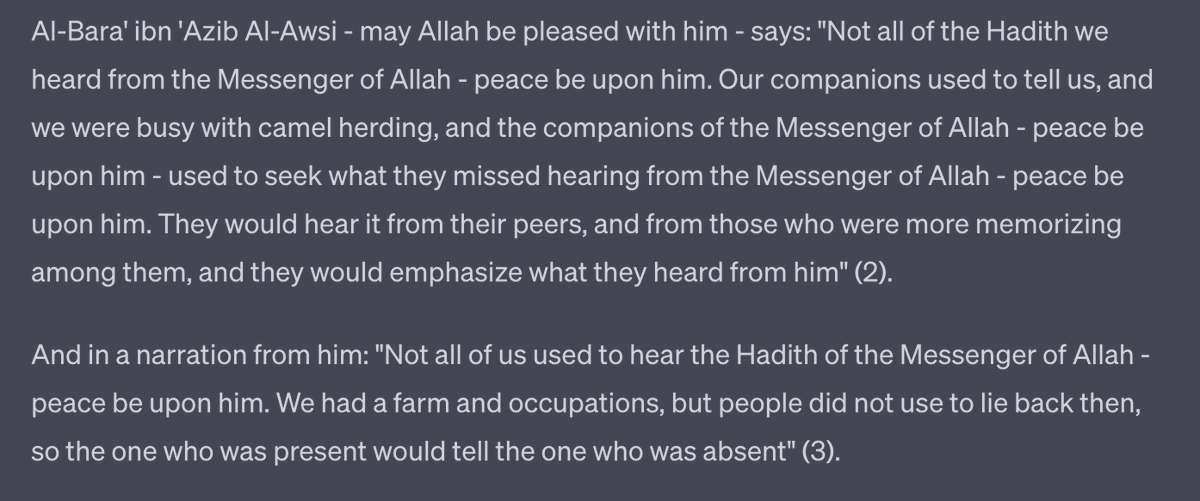 When asked, Al barra b. 'Azib and Anas b. Malik dodge the question and basically say "I wasn't a direct witness but you shouldn't doubt what I report anyway".