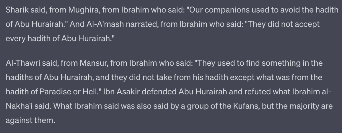 Several centuries later Ibn Asakir tries to refute Ibrahim al Nakha'i.