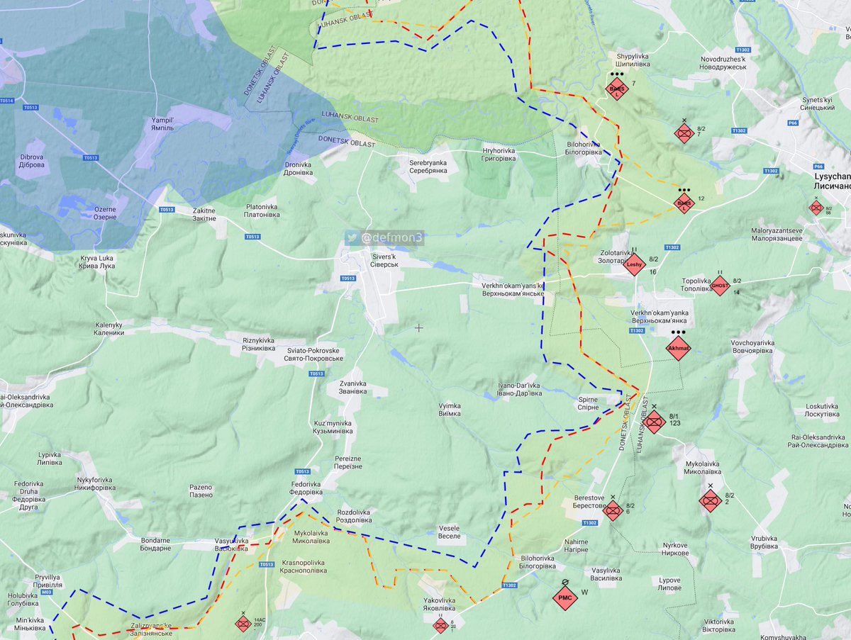 RuAF made minor gains SE of Bilohorivka, south of Spirne and the gas pumping station east of Spine changed hands a few times and is most likely in RuAF hands at the moment.