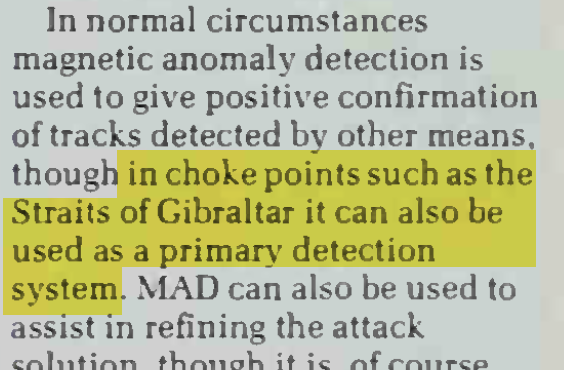of tracks detected by other means, though in choke points such as the Straits of Gibraltar it can also be used as a primary detection system" Modern Submarine Warfare, D.Miller,J.Jordan