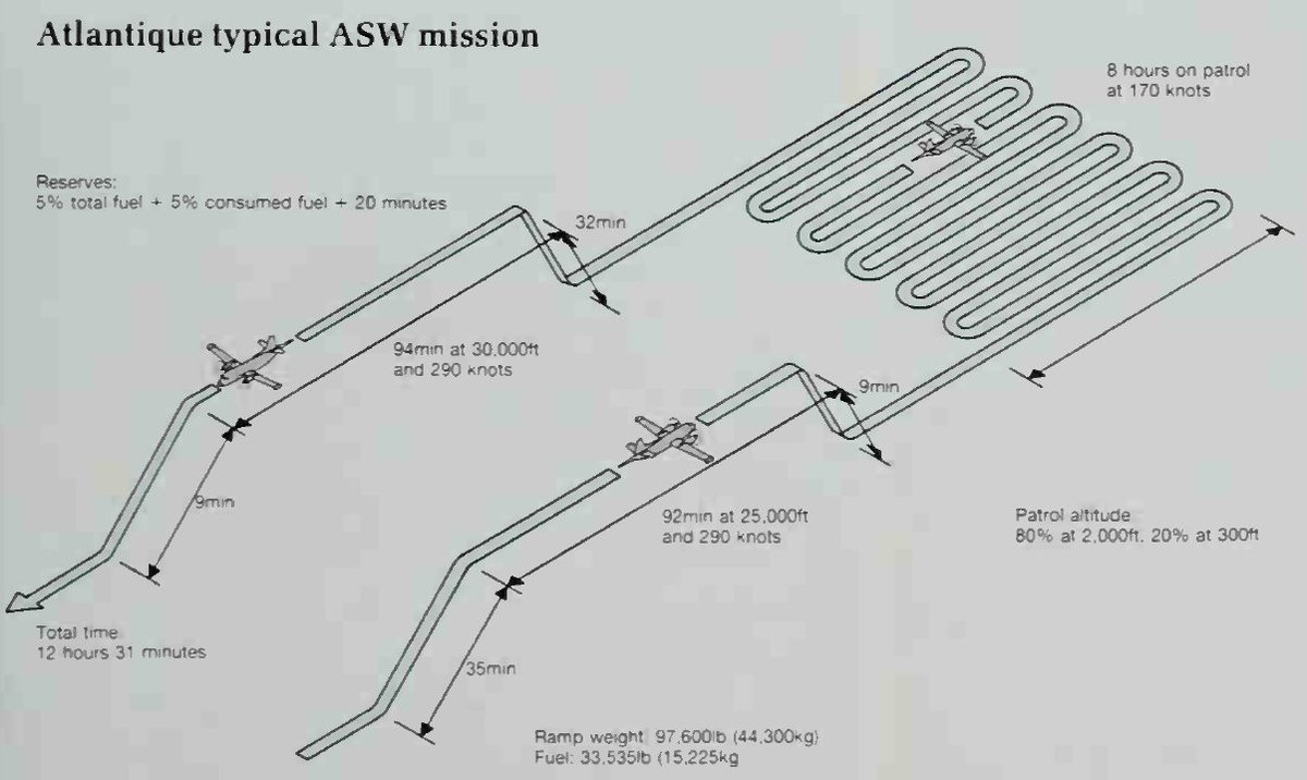 [7] Un P-8 a 400 millas náuticas puede permanecer 8,3 horas en patrulla a su altitud ideal. Si aplicamos una reducción del 45% durante el tiempo de patrulla porque se realiza a 5.000 pies de altura, el tiempo de patrulla sería solo de 4,6 horas.