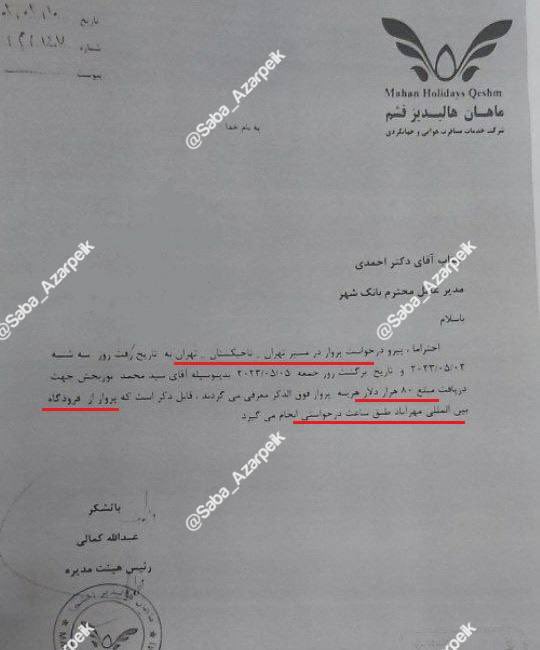 7️⃣نامه فیک بود #فسادیاب مطلع شد و پیشدستی کردیم نامه فیک منتشر کردیم! البته نادان هستند اگر خودشون این نامه فیک رو منتشر میکردند باید یقهشون رو واجا میگرفت که به چه اجازهای۸۰هزار دلار رو اسکناس به شرکت مسافرتی دادید! بدتر میشد