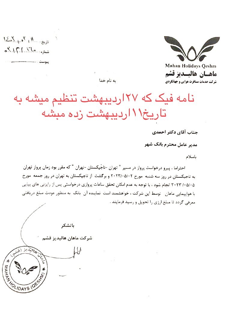 مدیرانت مجبورند در همون۲۷اردیبهشت دستور فیک خرید بلیط بدن! دو هفته بعد پرواز!گاف پشت گاف